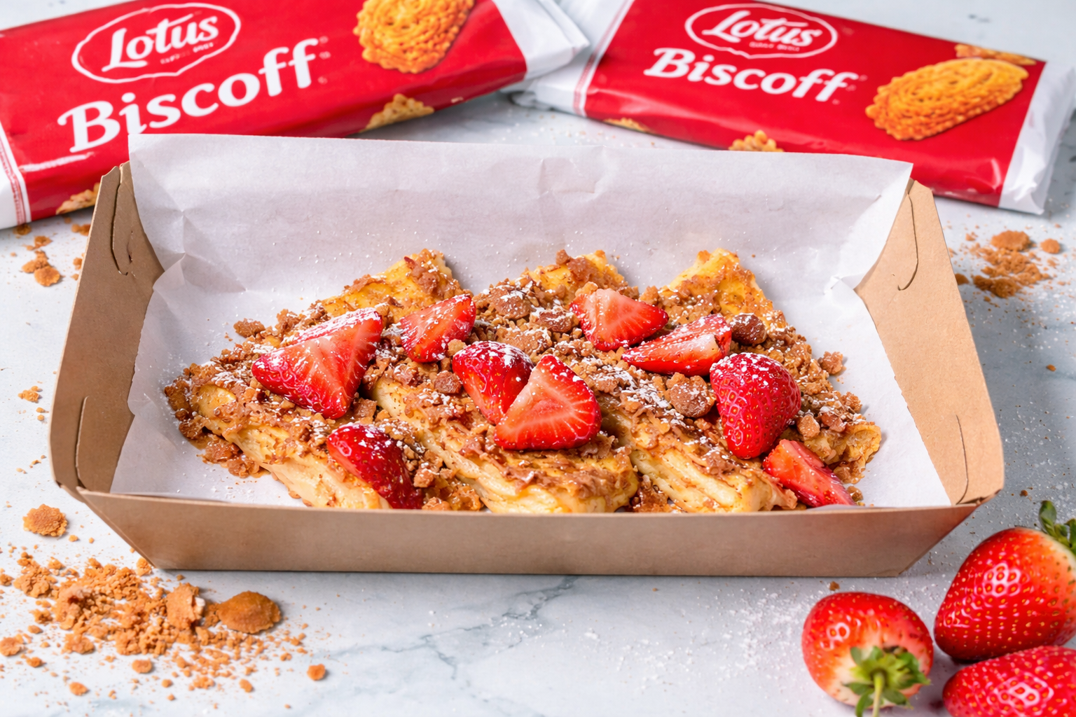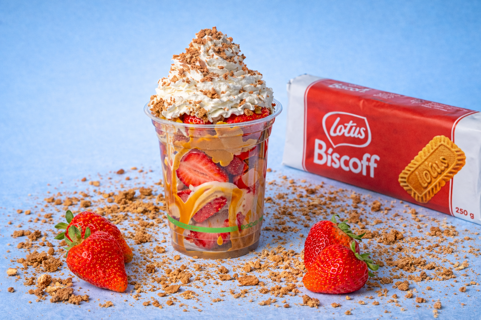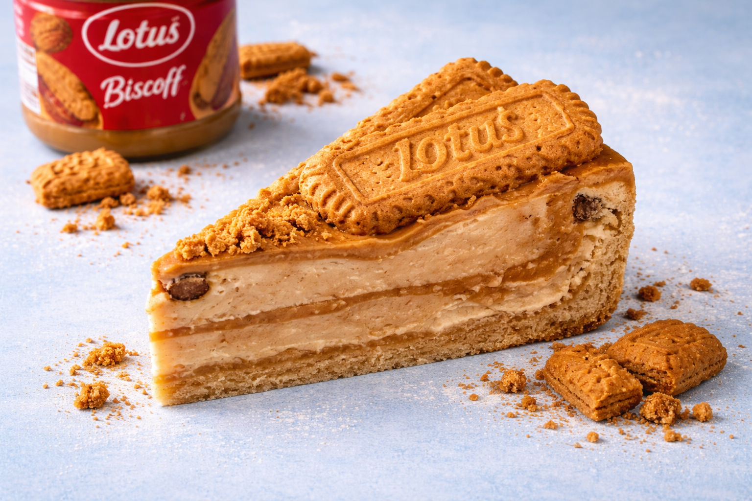 Rich & Creamy White Chocolate Cheesecake layered with Lotus Biscoff topping & chunky Biscoff Crumb