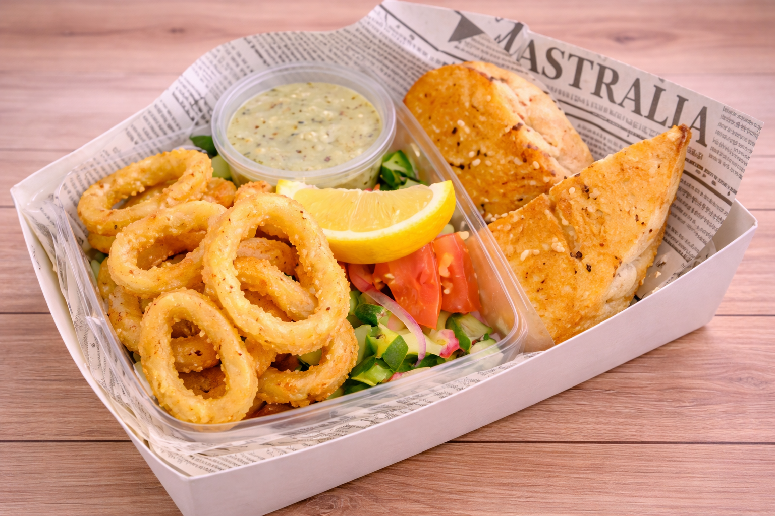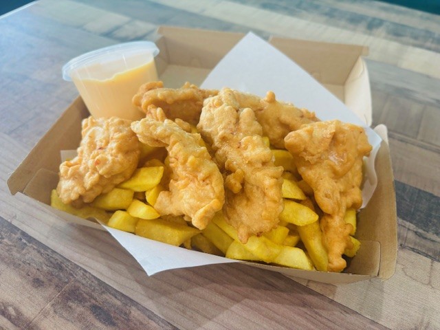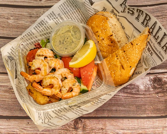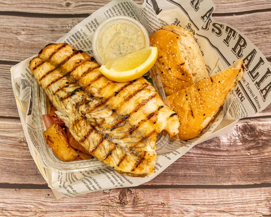 1 Panko crumbed butterfish, 2 scallops, 2 prawns, 2 calamari rings, snack chips & tartare sauce.