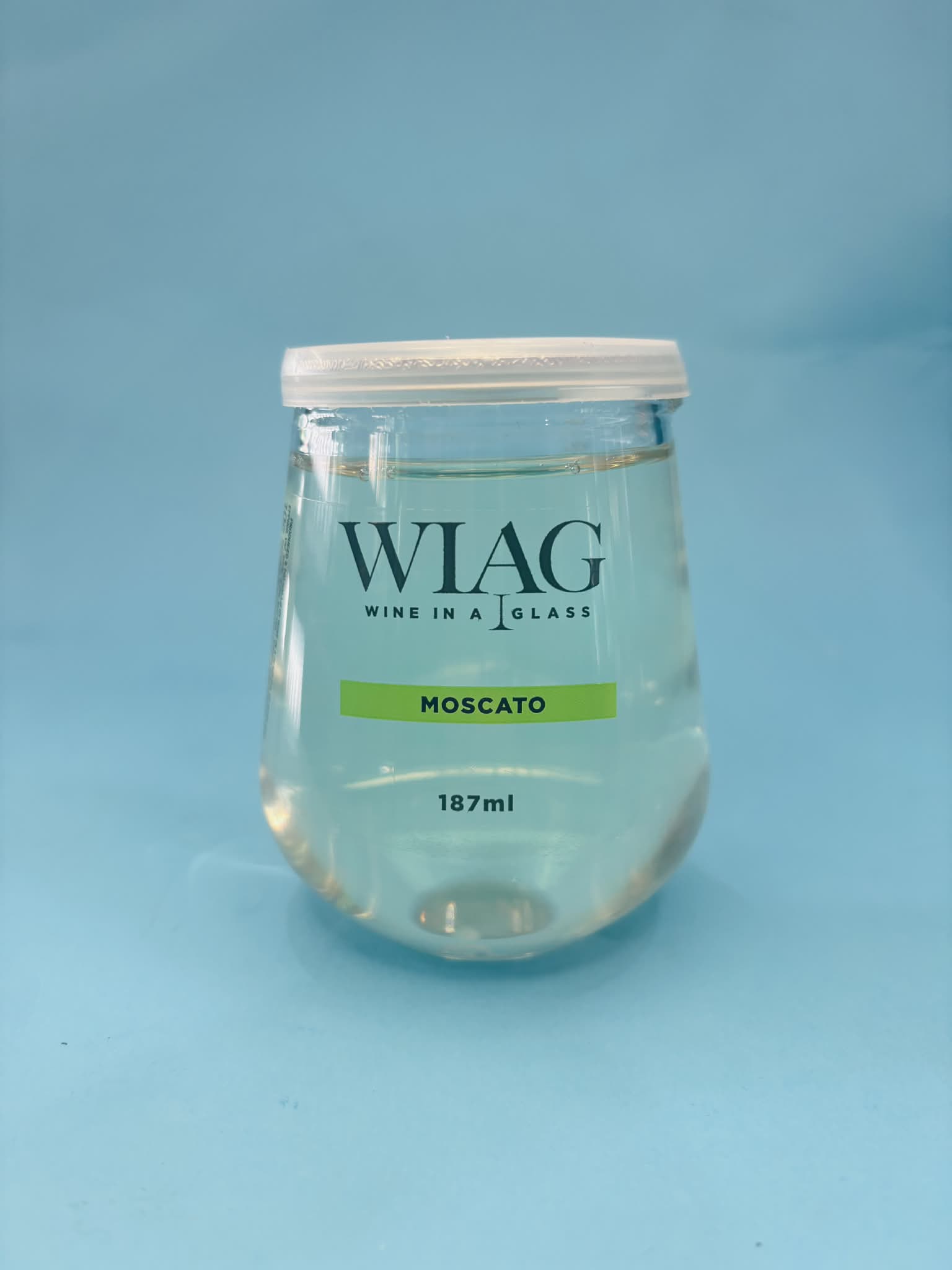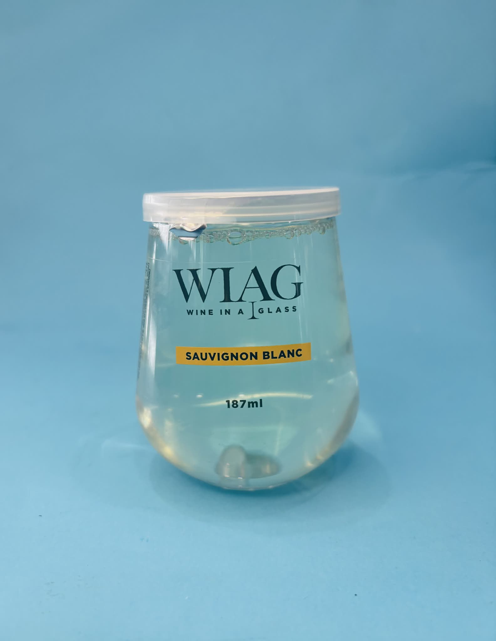 WIAG (Wine in a Glass) Its convenience and ability to offer incredibly fast serve-times for busy bars makes Wine In A Glass the natural choice for Dine In & Take Away. You can enjoy a glass of wine without having to worry about carrying glasses or drinking out of flimsy plastic tumblers.
