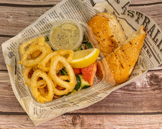 10 Calamari rings served with garden salad & homemade cocktail sauce